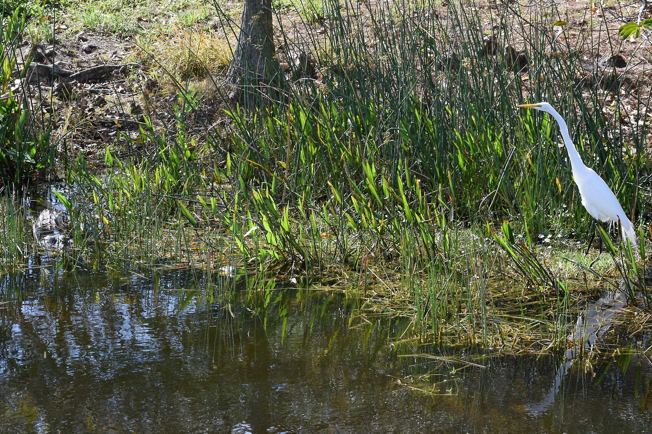 Post-script: This blogger did not stick around long enough to see if the egret escaped from getting alligatored.