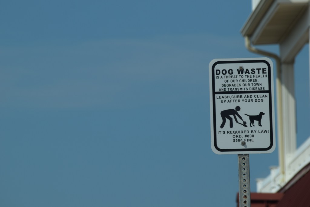 Apparently, our society has to spend time, money, and resources placing these signs in strategic and otherwise pristine locations where people frequently walk their dogs, to remind these inattentive dog walkers to pick up after their defecating canine.