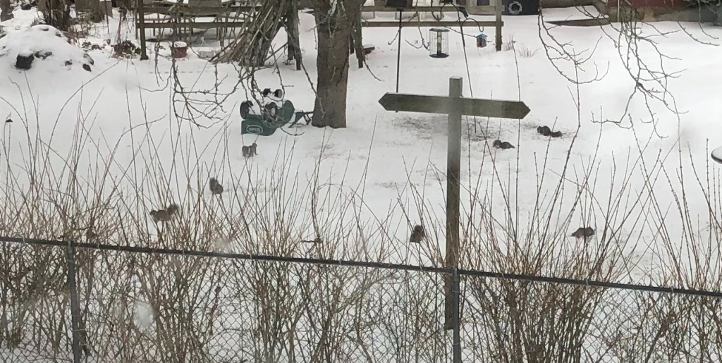Picture: Seven squirrels feeding in my neighbor’s backyard on Feb. 19, 2021