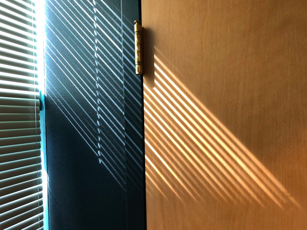 Sunshine slices streak Straight through thin louvered slivers: Light hinges on shade. ______ Photo taken in Cherry Hill, NJ