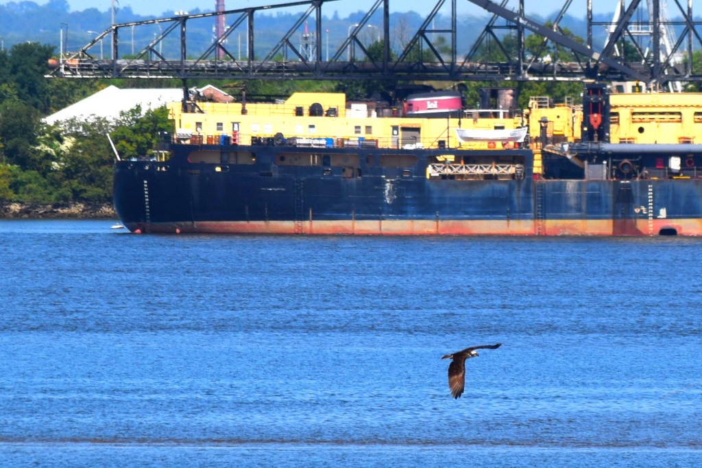 Photo of an osprey in flight, taken at the Delaware River, from Red Bank Battle Field Park, NJ